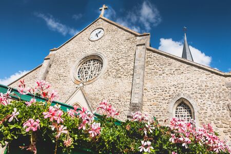 Cherbourg-en-Cotentin, France - August 06 2020: The Saint-Clément church was built in the Val-de-Saire district, opposite the Pasteur hospital, between June 1853 and 1856 by the town architect Geufroy.