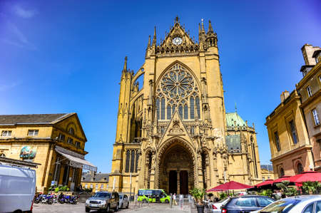 Metz, France - July 17, 2019: Cathedral of Saint Stephen of Metz in France on a sunny summer day