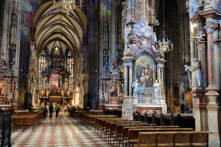 VIENNA, AUSTRIA-OCTOBER, 9, 2017: close view of the interior of st stephens cathedral in vienna, austria