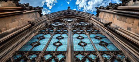 Gothic Architecture Details Stained Glass Windows and Stone Facade of Cologne Cathedral in Germany