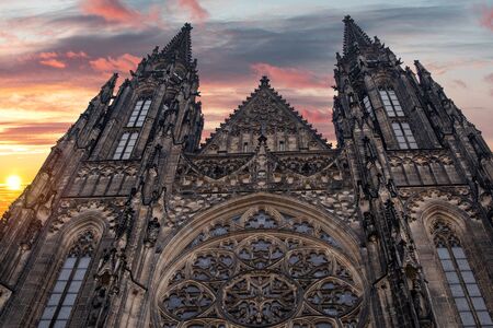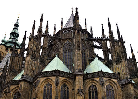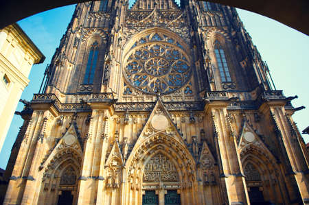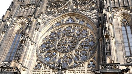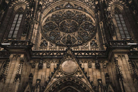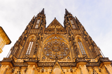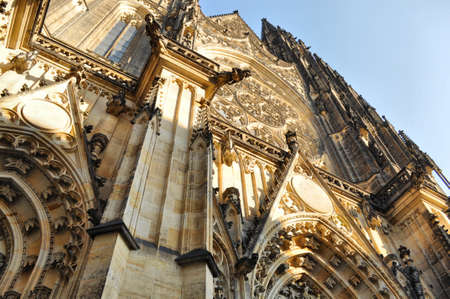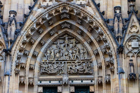 Facade architecture details of St. Vitus cathedral in Prague, Czech