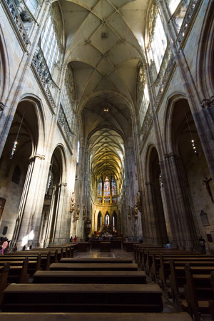 Czech Republic, Prague - September 30, 2017: Interior of St. Vitus Cathedral at Prague Castle, Czech Republic