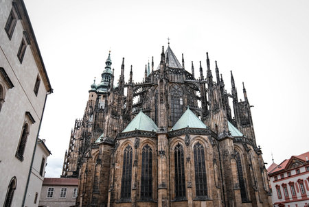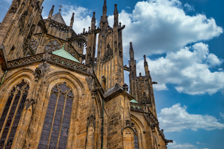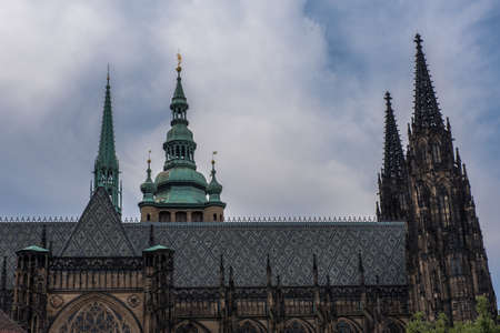 PRAGUE, CZECH REPUBLIC - JUNE 14, 2017: Architecture detail of famous historic st. vitus cathedral in Prague, Czech Republic