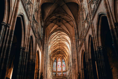 Interior of gothic St. Vitus cathedral in Prague Castle, Prague, Czech Republic. May 26, 202