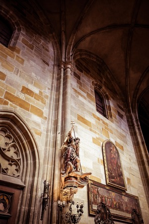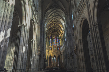 PRAGUE, CZECH REPUBLIC - SEPTEMBER 19, 2014: Interior of the Metropolitan Cathedral of Saints Vitus, Wenceslaus and Adalbert. The cathedral is an excellent example of Gothic architecture. Toning. Stylization.