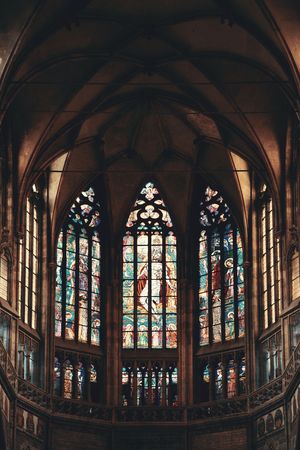 Colorful stained glass window in a gothic church