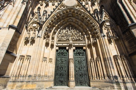 Detail of the impressive Saint Vitus Cathedral door in Prague, Czech Republic