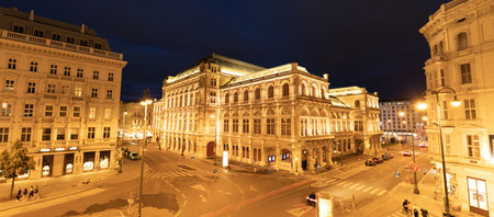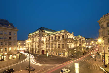 VIENNA, AUSTRIA - OCTOBER, 2019: Vienna Opera House night view with traffic motion lights