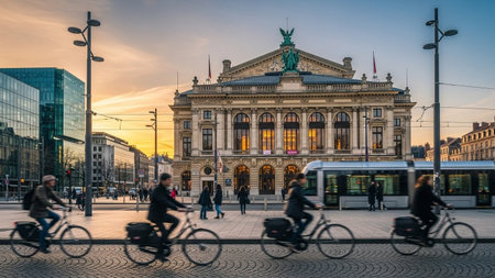 Paris Opera with street as the city famous tourism attraction and landmark.
