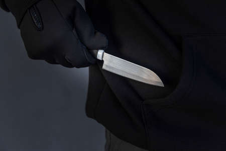 A man with a knife in his hand is the embodiment of a tense moment where crime becomes reality.