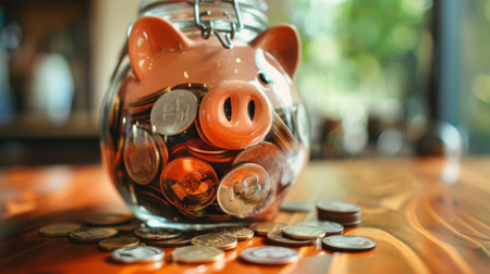 A piggy bank overflowing with coins, symbolizing the joy of saving money and achieving financial goals.