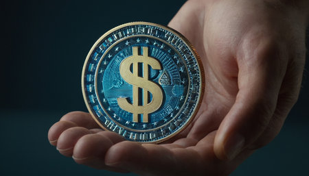Golden Coin on Dark Background with Dramatic Lighting, Symbolizing Wealth, Investment, and Cryptocurrency Futures in Digital Economy