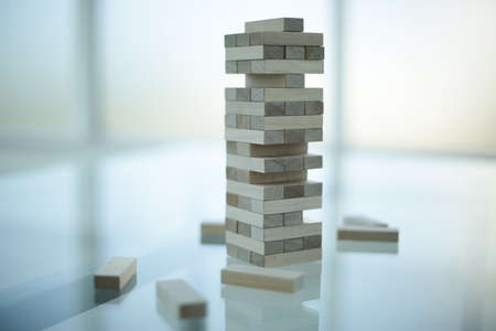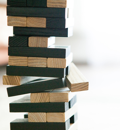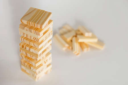 Janga wooden box. An imbalance. destruction of blocks. Mistake. Entertainment activities. A game of physical and mental skill.