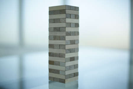 Blocks wood game with copy space, The tower from wooden blocks from the top view, Jenga, Businessman manage his strategy, Concept of education, risk, development, and growth