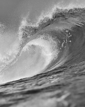 CloseUp Ocean Wave Power BlackAndWhite, Dramatic Curling Barrel Captured In HighContrast Tones, Textured