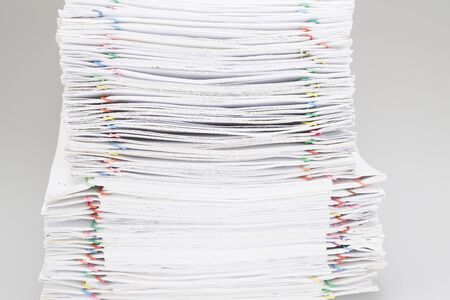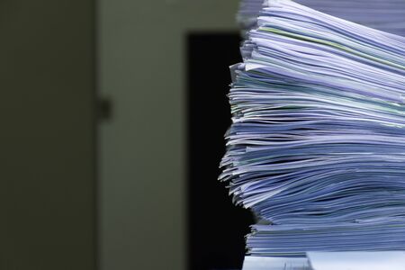 Pile of unfinished documents on office desk folders. Business papers or document is written. Business offices concept.