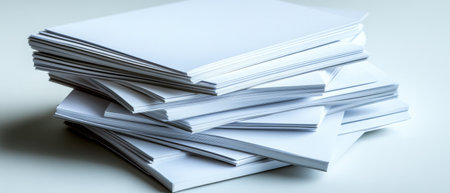 AI Generated. A stack of blank white sheets of paper arranged neatly on a clean surface
