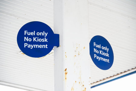Fuel only no kiosk payment sign at petrol station