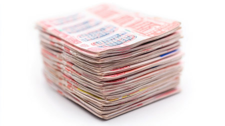 A neat stack of colorful flyers. suggesting a successful marketing campaign or a large event. Perfect for representing business. promotion. and advertising concepts.