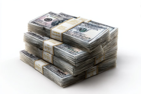 Stacks of one hundred dollar bills displayed against a clean background, representing wealth and finance in a modern context