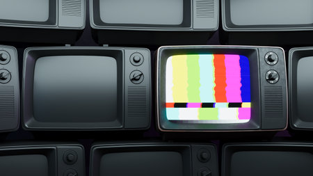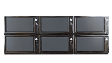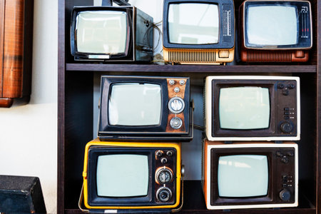 Wall mounted old-fashioned vintage tv screens with blank white spaces to superimpose text