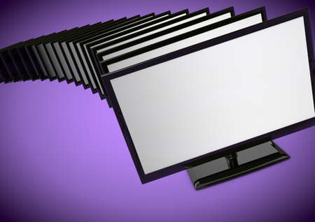 Row of widescreen HD displays wtih multiple images isolated on white background