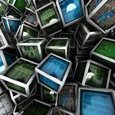 Monitor wall background - 3D illustration of wall of glowing blank computer screens