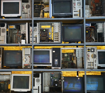 Many chips in a warehouse in the town of computers and household appliancesips in a warehouse in the town of computers and household appliances