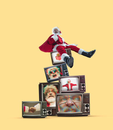 Emotional Santa Claus congratulating with New Year and Christmas 2022 all people in world. Contemporary art work