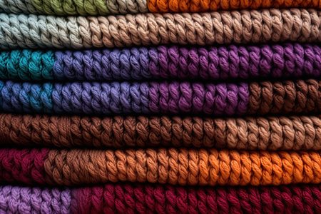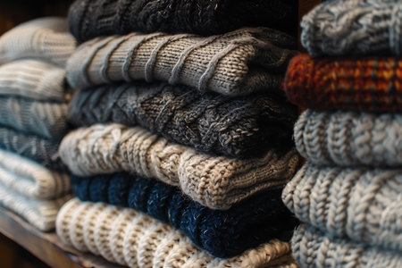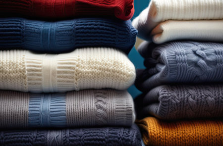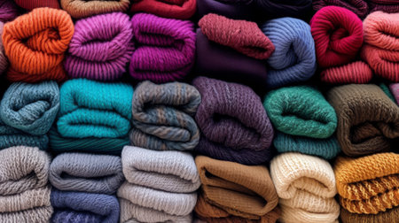 Colorful Stack of Cozy Knitted Sweaters in Various Textures and Patterns