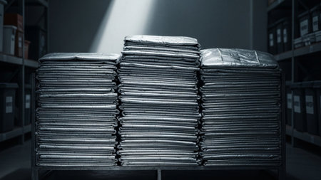 a pile of colorful fabric rolls stacked in a warehouse