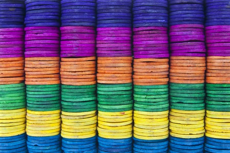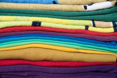 close up of a colorful stack of folded clothes texture background