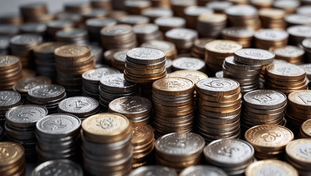 background. Lots of coins. economy. AI generative. illustration in photorealistic style.