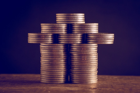 Gold coins stacks , Business economy and financial growth on investment