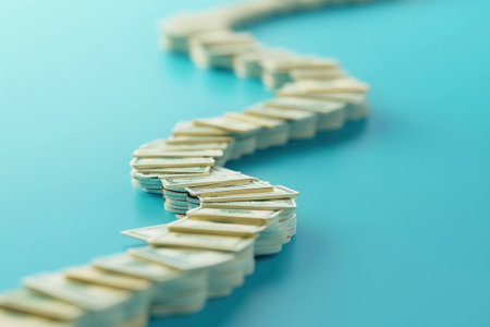 A winding path made of banknotes on a turquoise background, symbolizing financial growth and investment opportunities