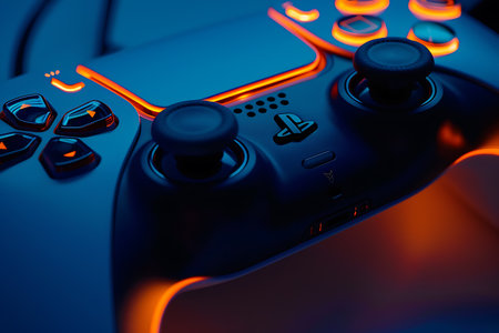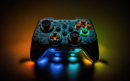 A close-up image of a video game controller, symbolizing the world of video gaming, entertainment, and digital play.