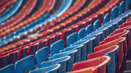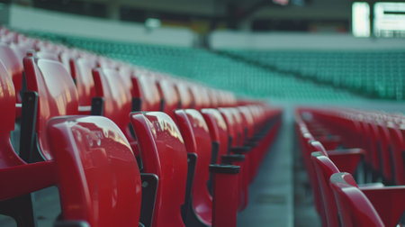 Rows of plastic chairs await passionate fans at the sport stadium, anticipating the thrill of competition. Invest in the excitement of live sports.
