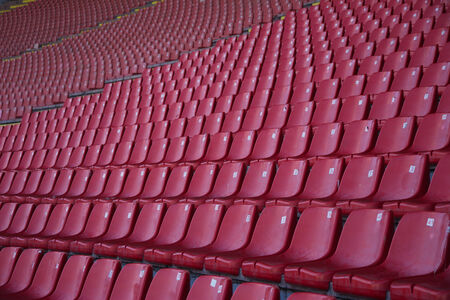 Red chairs bleachers in large stadium