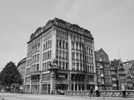 HAMBURG, GERMANY - CIRCA MAY 2017: HafenCity quarter in the district of Hamburg Mitte on the Elbe river island Grasbrook on former Hamburger Hafen (Port of Hamburg) in black and white