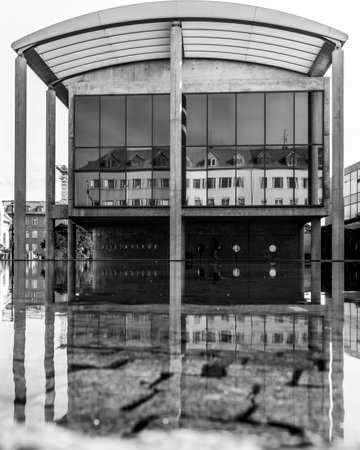 Reflection of the building in the water. Urban landscape