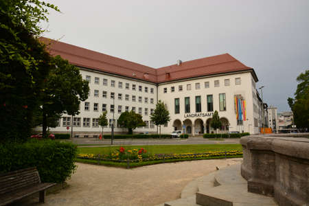 Kehl, Germany - Dec 13, 2016: German city of Kehl with main City Hall Rathaus Baden architect Friedrich Arnold built in 1817. Photo taken before the tramway connects France and Germany