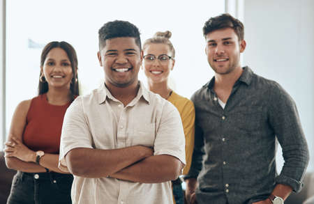 Meet the best team in the business. Portrait of a group of young creatives sitting together on a couch in an office.