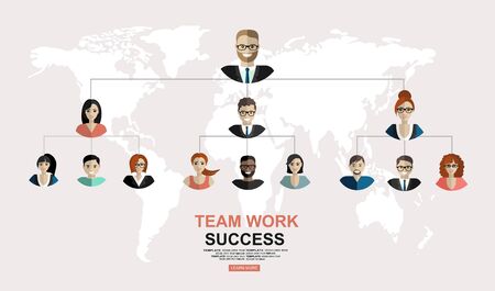 Successful teamwork, hierarchy of company flat illustration isolated, human resource. Modern flat design concepts for web banners, web sites, printed materials, infographics.