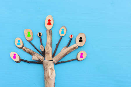 Business image of wooden tree with people icons, human resources and management concept