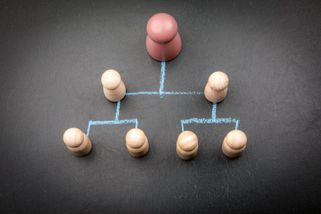 Organizational hierarchy structure concept with leader figure and blue chalk connections