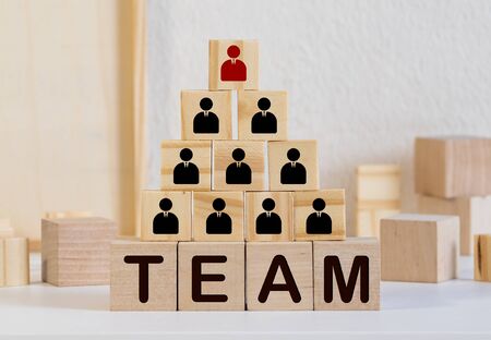 Wooden blocks with people icons. Organisation structure, management and social network concepts.