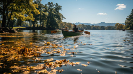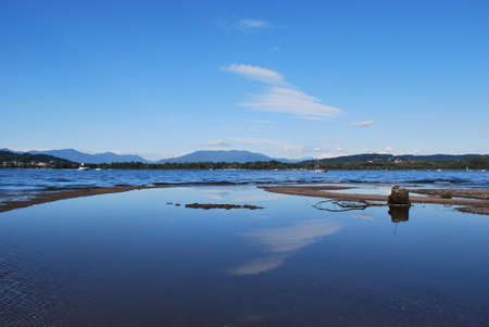 View of Banyoles Lake, in Gerona (Catalonia, Spain) with clear and blue skies on a sunny day