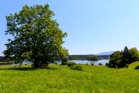 Landscape with lake and mountains in Bavaria, Germany, Europe