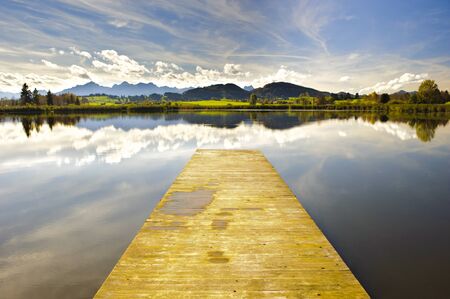 panorama landscape in Bavaria at alps mountainss with mirroring in lake