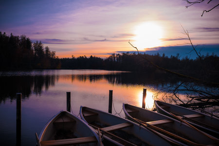 Fantastic play of colors on Lake Constance with a beautiful sunset atmosphere